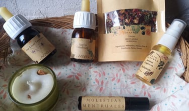 Con la tintura y la tisana podrás regular esos cambios emocionales, reducir el sangrado si es muy abundante, y con el rol-on aflojar la inflamación y la presión dolorosa del bajo vientre.